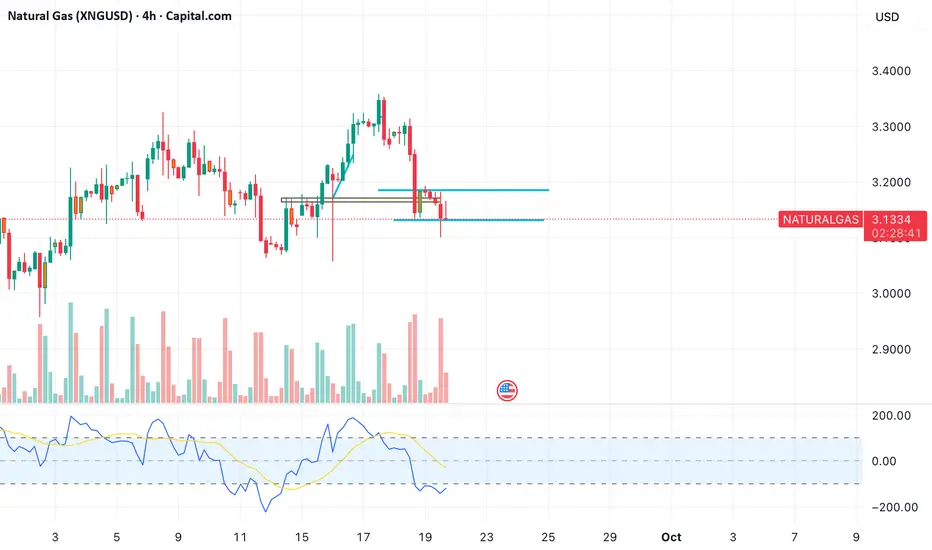 • Price broke down below the horizontal support zone (~$3.12–$3.13), but the candles show strong rejection wicks which indicats sign of bear trap.
