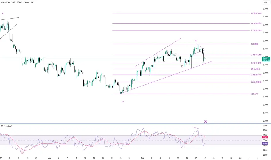 Looks like natural gas is taking support at the 0.618 level of the previous swing. If this level (3.1228) is broken, we can expect a big move on the down side.