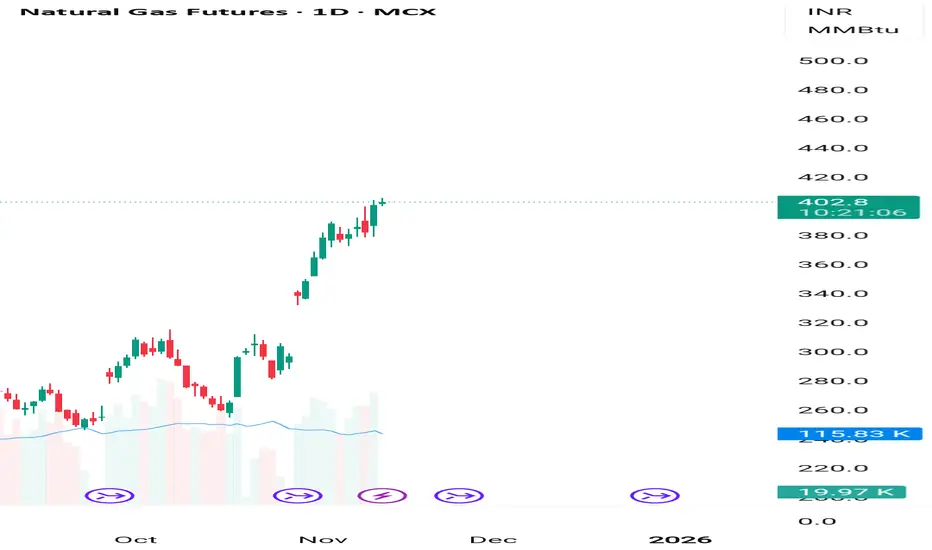 - Price Action: Natural Gas is holding steady above ₹402, showing mild bullish momentum.