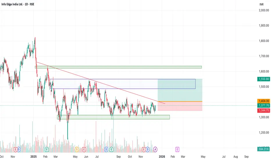 Info Edge - Consolidation is ongoing and near breakout.