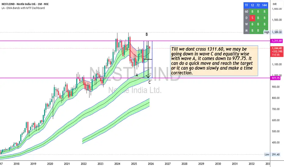 Till we don't cross 1311.60, we may be going down in wave C and equality wise with wave A, it comes down to 977.75. It can do a quick move and reach the target or it can go down slowly and make a time correction.