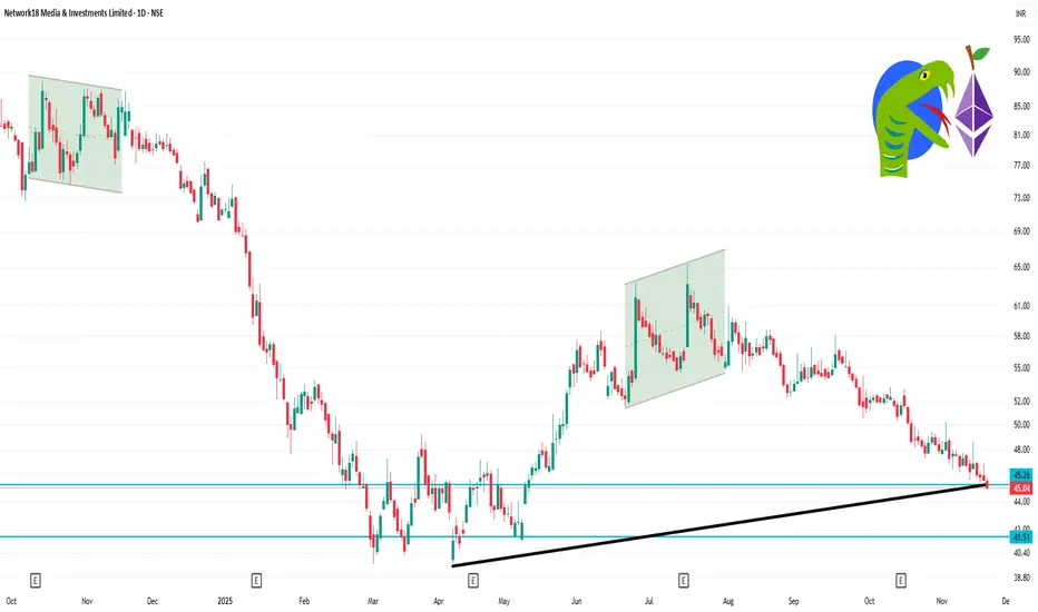 Key Support Level: Around ₹ 44.50-45.00 — if price breaks below this, further downside may open.