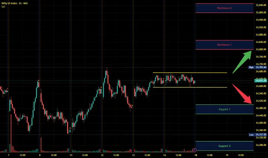 Index has resistance near 24800 – 24850 range and if index crosses and sustains above this level then may reach near 25000 – 25050 range.