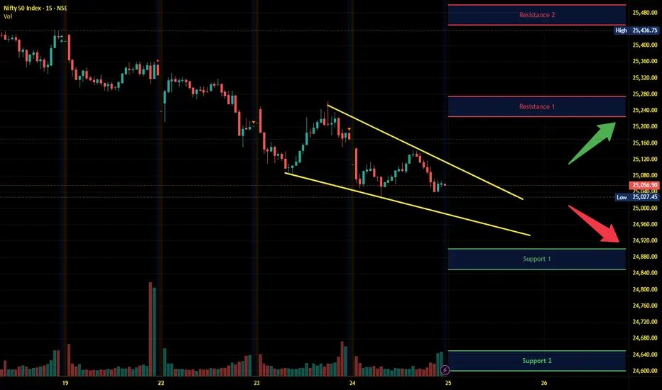 Index has resistance near 25225 – 25275 range and if index crosses and sustains above this level then may reach near 25450 – 25500 range.