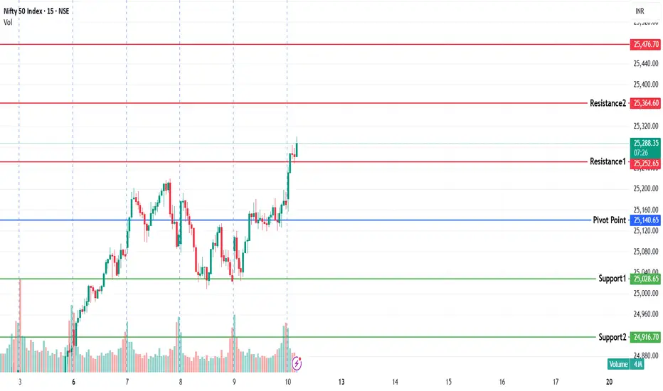 If the candle stays above the pivot point, it is considered a bullish bias; if it remains below, it indicates a bearish bias. Price may reverse near Resistance 1 or Support 1. If it moves further, the next potential reversal zone is near Resistance 2 or Support 2. If these levels are also broken, we can expect the trend.