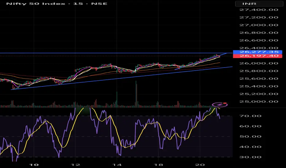 • Immediate resistance lies at 26,200–26,300. A strong hourly close above 26,300 increases the likelihood of a move to record highs.
