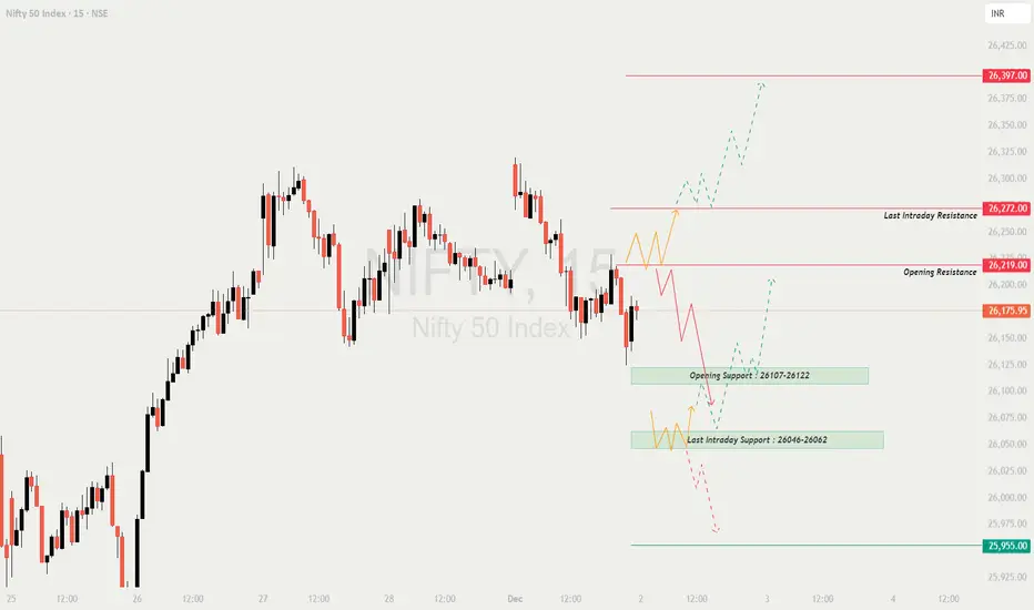 If Nifty opens around 26,050–26,090, price enters the demand zones.