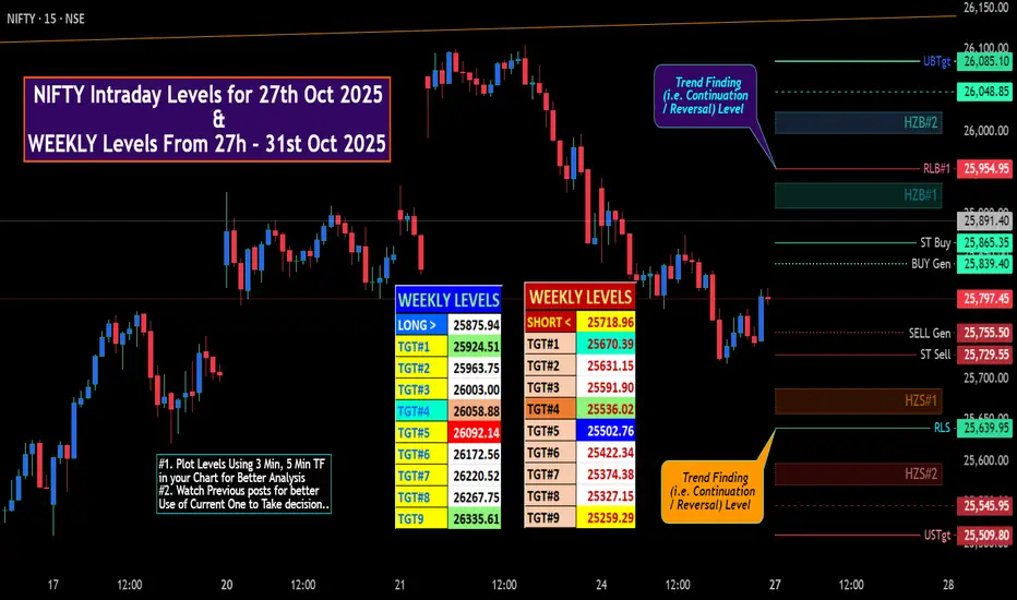 NIFTY Intraday & Swing Levels for 27th Oct 2025