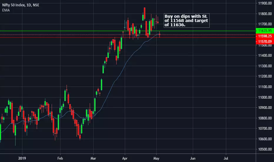 One might want to buy Nifty on dips with SL of 11568 and target of 11636 just for today.