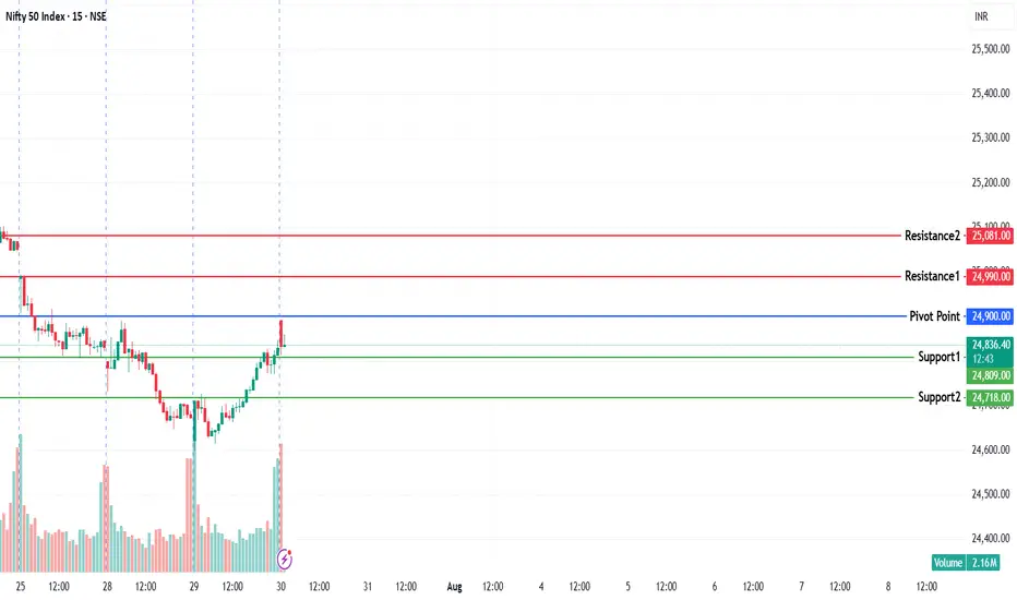 If the candle stays above the pivot point, it is considered a bullish bias; if it remains below, it indicates a bearish bias. Price may reverse near Resistance 1 or Support 1. If it moves further, the next potential reversal zone is near Resistance 2 or Support 2. If these levels are also broken, we can expect the trend.