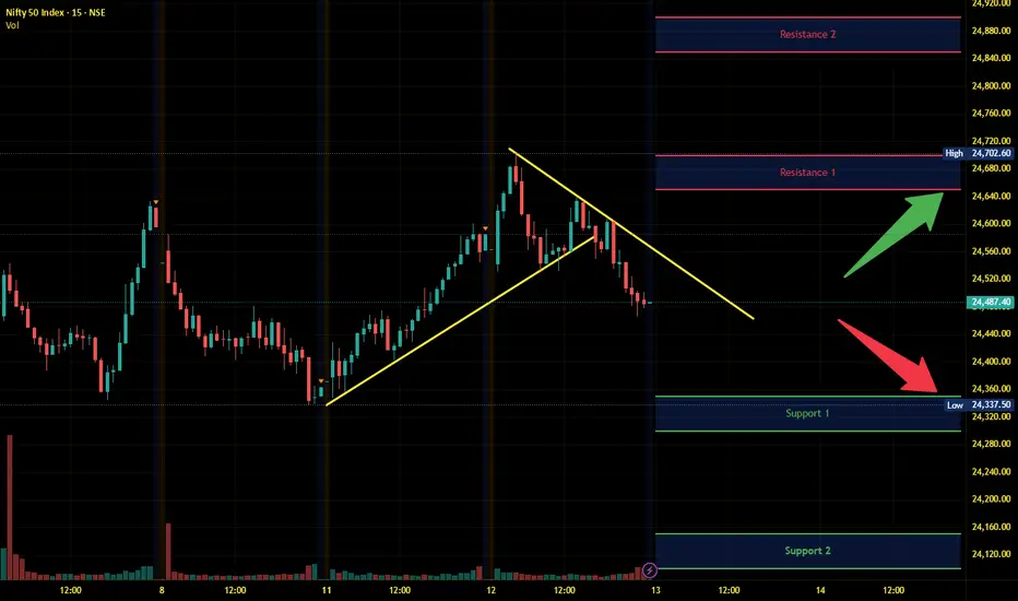 Index has resistance near 24650 – 24700 range and if index crosses and sustains above this level then may reach near 24850 – 24900 range.