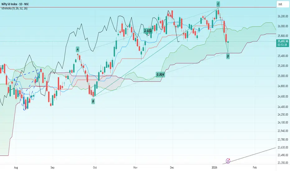 Nifty has made a Bullish Harmonic Reciprocal ABCD pattern that coincides with Ichimoku Kumo support