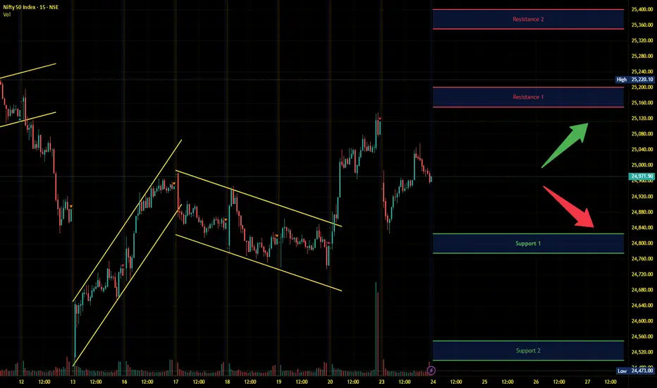 Index has resistance near 25150 – 25200 range and if index crosses and sustains above this level then may reach near 25350 – 25400 range.