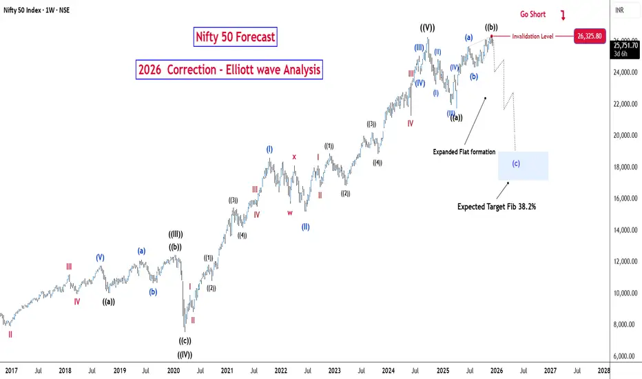 Nifty 50 Now in correction face of Grand super cycle . Already Wave A and B Completed. C wave starts now (forming Expanded / Irregular Flat) end up to Fib Retrace 38.2% so expected for correction in nifty 50 through Elliott wave theory so investors proper hedge your position or go short in FNO and big buying opportunity is coming soon...