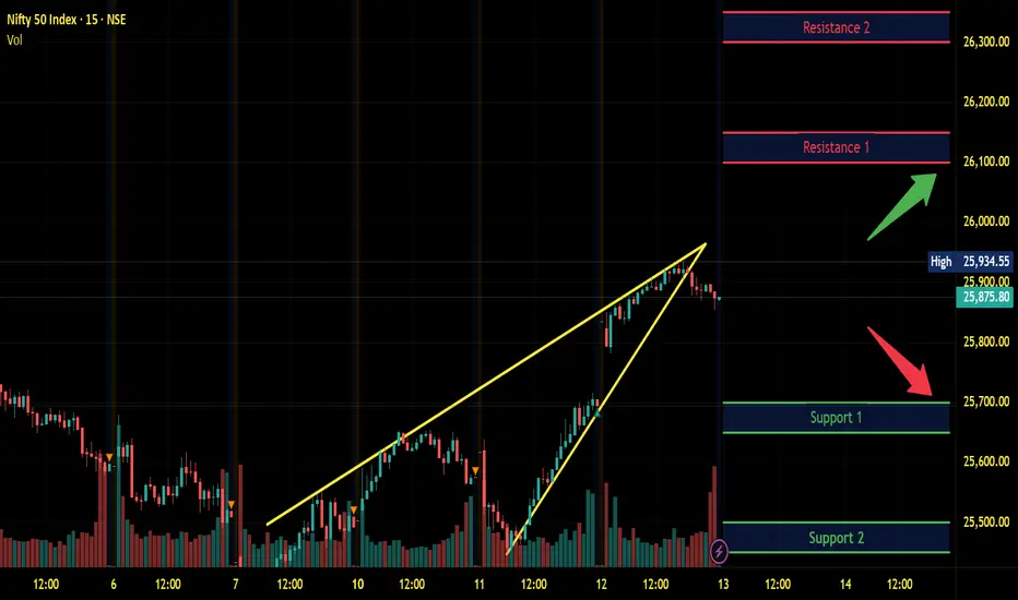 Index has resistance near 26100 – 26150 range and if index crosses and sustains above this level then may reach near 26300 – 26350 range.