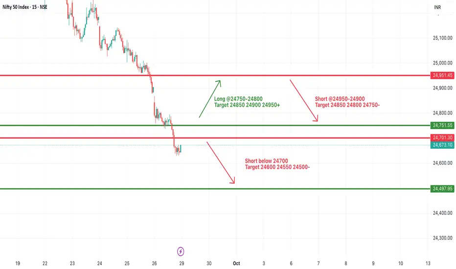 On the downside, if Nifty slips below 24,700, selling pressure may resume, dragging the index toward 24,600, 24,550, and 24,500-. This indicates that the index is still in a corrective phase, and unless a strong breakout is seen, rallies could face selling at higher levels. Traders should be cautious near 24,750 resistance and manage trades with strict stop-losses, favoring short setups on breakdowns for safer opportunities.