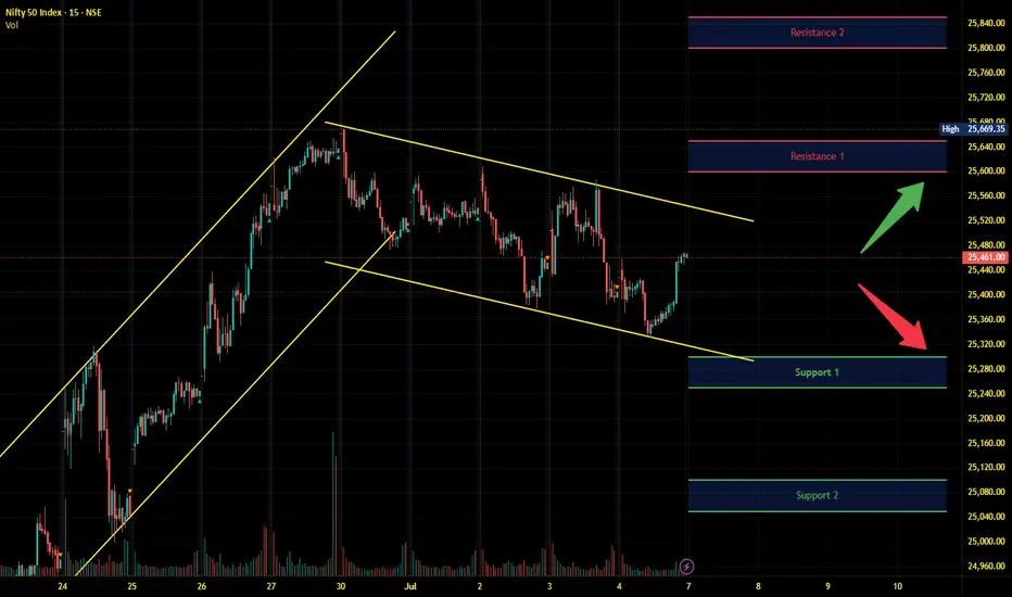 Index has resistance near 25600 – 25650 range and if index crosses and sustains above this level then may reach near 25800 – 25850 range.