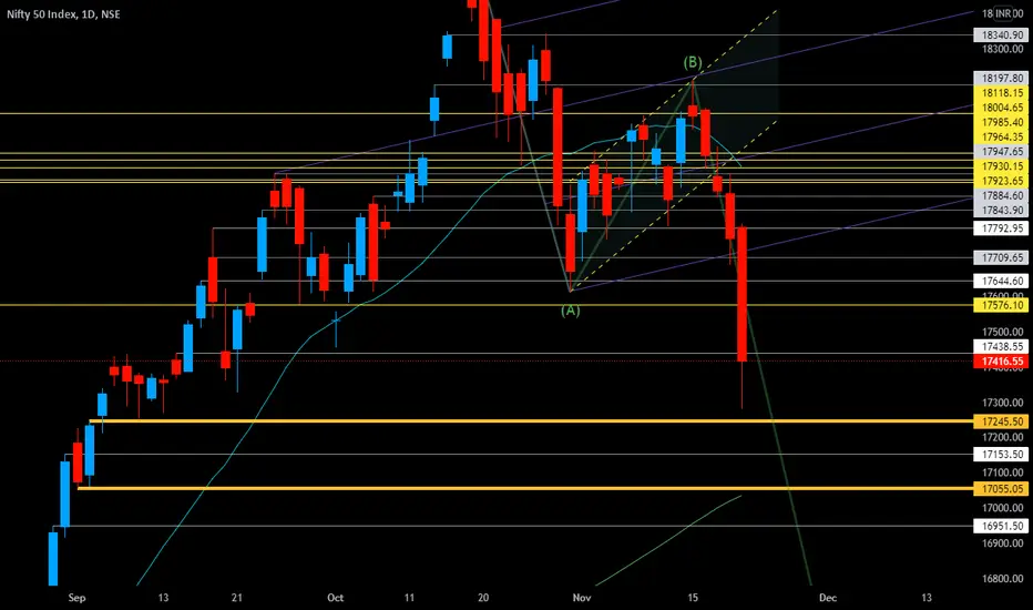 Few Important levels. Pull back can come from around 17000 levels and may top out at 17800. So on the down side we can trade till 17000 and the pull back can be traded up to 17800. These are as per today's data. Levels can change or become more precise as time passes.
