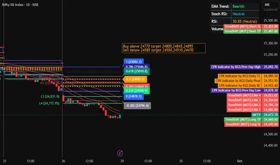 ➡️ Entry: Below the low of 5-min candle (close below 24,585)
