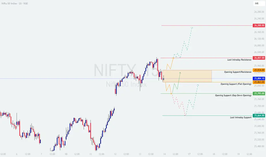 If Nifty opens above 26,000 – 26,050, it will open directly near or above the Last Intraday Resistance (26,007). Such a gap-up could trigger excitement at the open, but traders must wait for confirmation of strength.