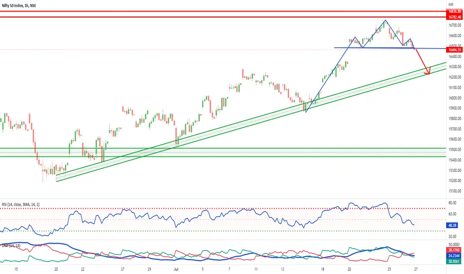 Head and shoulder chart pattern formed in hourly time frame, so we can expect further weakness in Nifty to 16250 - 16200 level in 1-3 days.