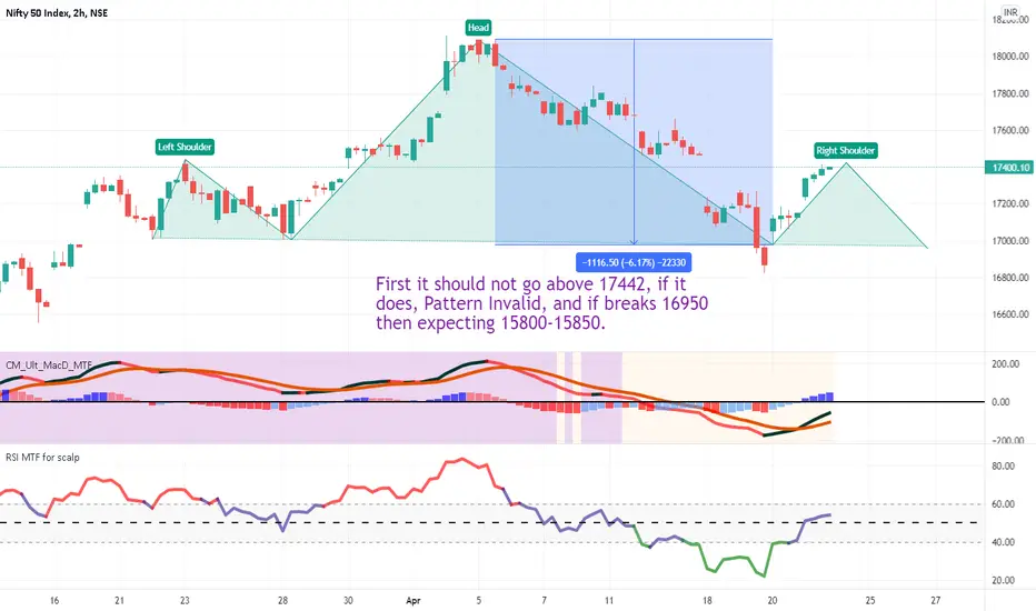Now the Right Shoulder is forming, which should not break the highs of 17442. (If it breaks then the pattern is invalid).