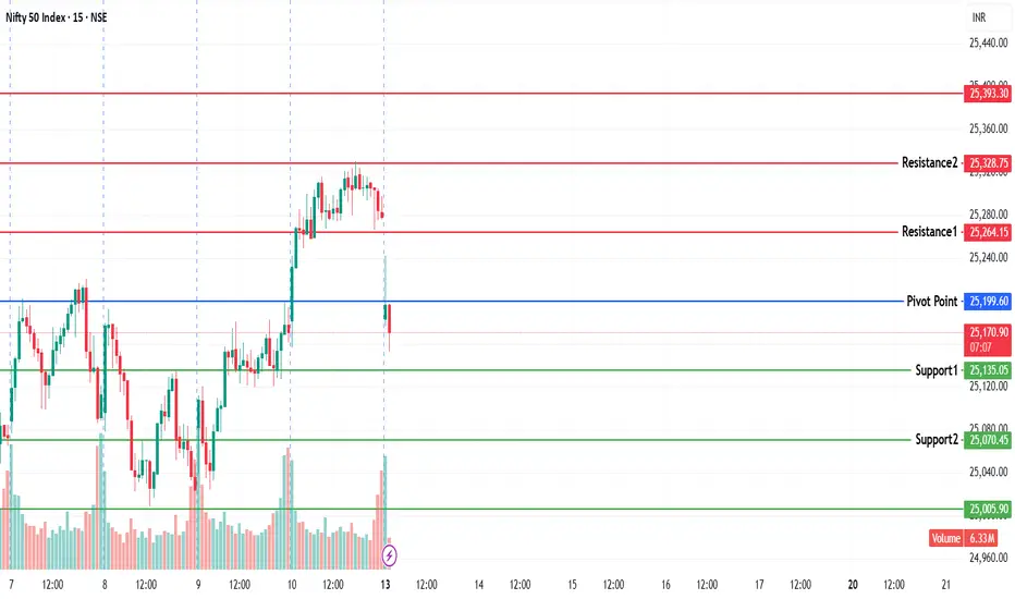 If the candle stays above the pivot point, it is considered a bullish bias; if it remains below, it indicates a bearish bias. Price may reverse near Resistance 1 or Support 1. If it moves further, the next potential reversal zone is near Resistance 2 or Support 2. If these levels are also broken, we can expect the trend.