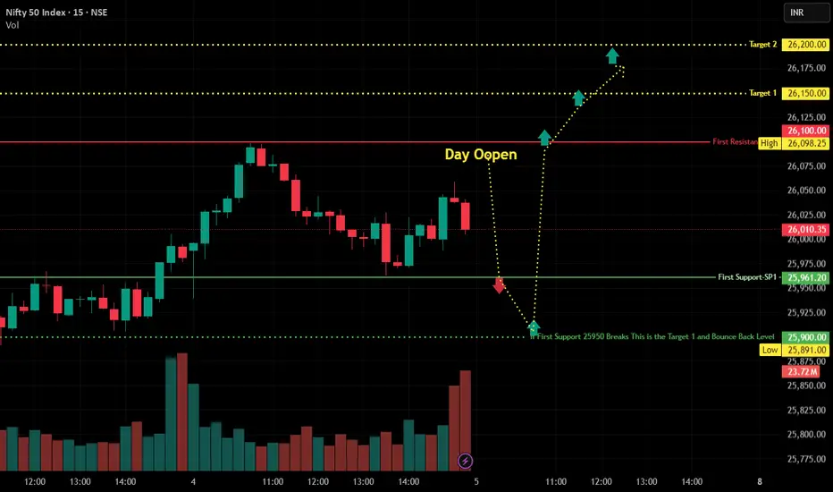 These are the nifty 50 Levels for 5 Dec 2025 as data shows 25900 is strong support may act as bouncing point as near DEC future is going slow. Not big gap up open. If it breaks first R1 26100 then rally may go towards Target 1= 26150 and toTarget 2= 26200.