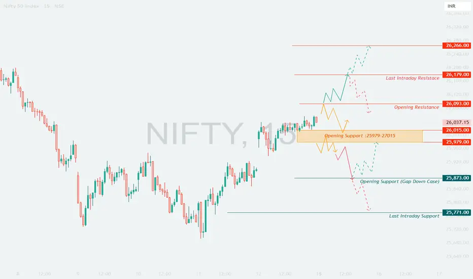 Nifty closed near 26,037, just above a key support band (Opening Support: 25,979–26,015) and below a series of overhead resistances.