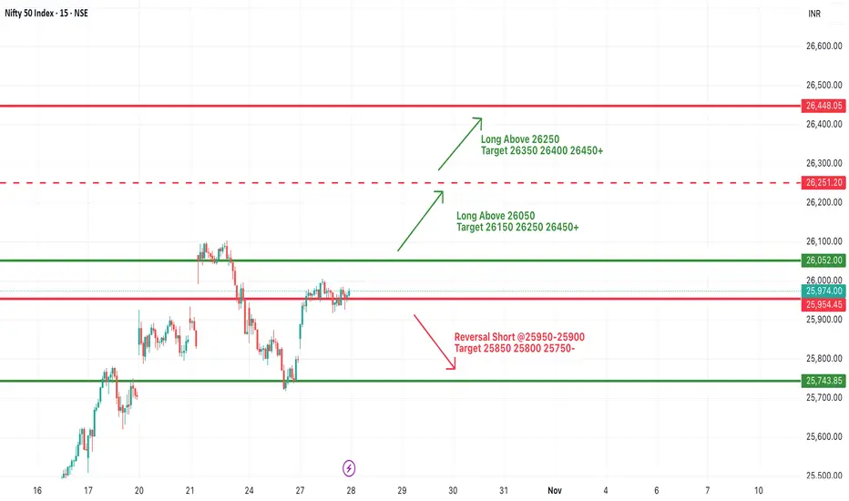 On the downside, immediate support lies around 25,950–25,900. A fall below 25,900 may trigger a minor pullback toward 25,800 and 25,750 zones.
