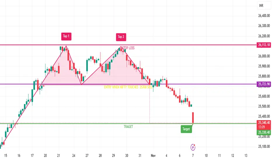 The double top breakdown played out as expected, and Nifty slipped toward the 25,300 zone after breaching the neckline near 25,700.