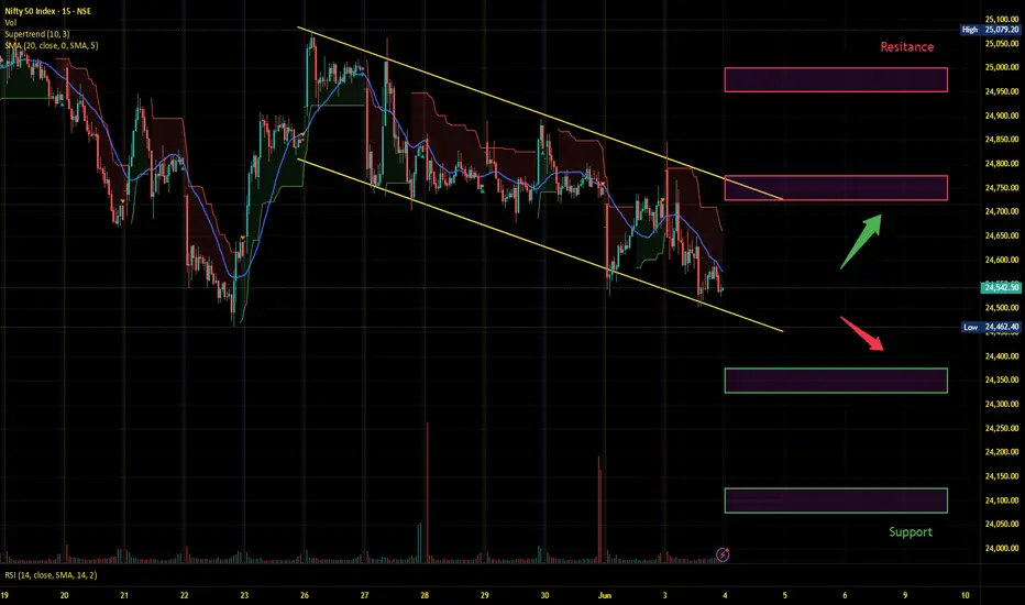Index has resistance near 24725 - 24775 range and if index crosses and sustains above this level then may reach near 24950 – 25000 range.