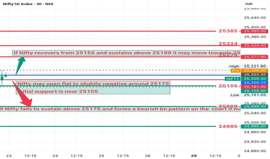 If Nifty stays between 25155–25199 Avoid or Sell Options with hedging