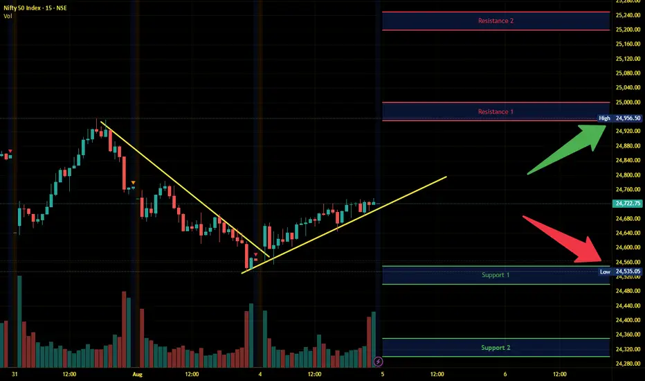 Index has resistance near 24950 – 25000 range and if index crosses and sustains above this level then may reach near 25200 – 25250 range.