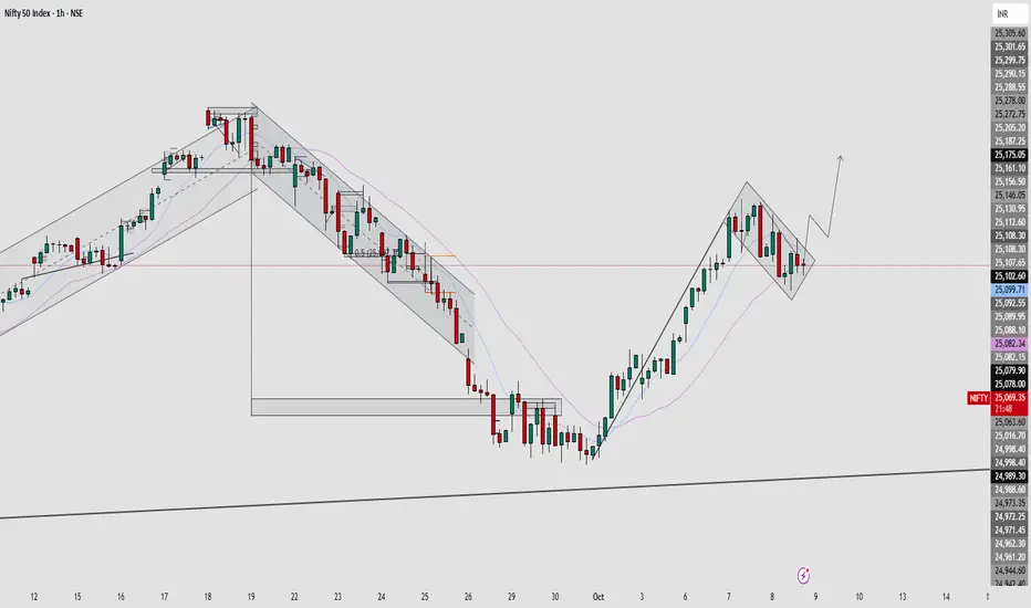 NIFTY forming a clean bullish flag pattern after a strong impulse.Watching for breakout above 25,130–25,170 zone for continuation toward 25,300+.