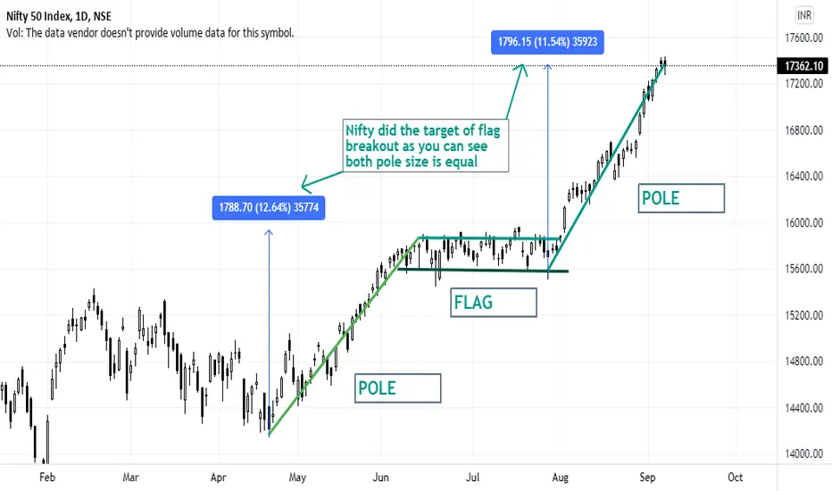 As you can see nifty did the target of pole and flag breakout now we can assume nifty will correct a bit here or will consolidate for time bing