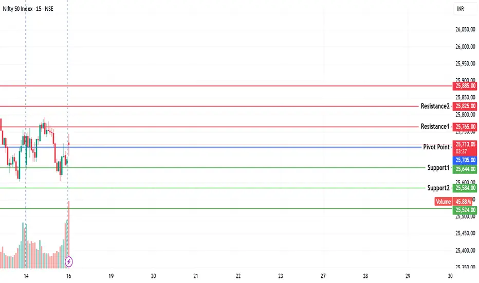 If the candle stays above the pivot point, it is considered a bullish bias; if it remains below, it indicates a bearish bias. Price may reverse near Resistance 1 or Support 1. If it moves further, the next potential reversal zone is near Resistance 2 or Support 2. If these levels are also broken, we can expect the trend.