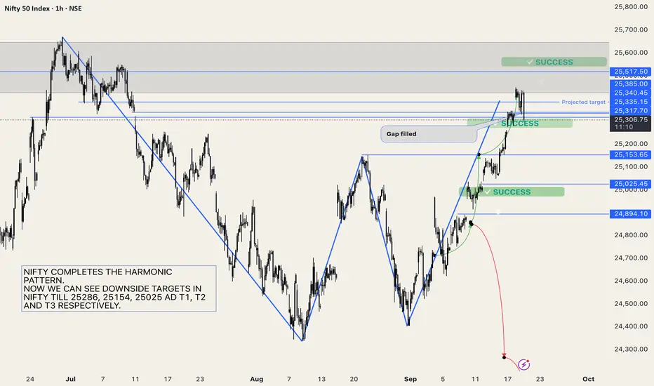 We can now identify downside targets in Nifty until 25286, 25154, and 25025 AD, respectively, for T1, T2, and T3.