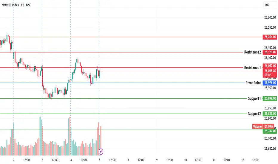 If the candle stays above the pivot point, it is considered a bullish bias; if it remains below, it indicates a bearish bias. Price may reverse near Resistance 1 or Support 1. If it moves further, the next potential reversal zone is near Resistance 2 or Support 2. If these levels are also broken, we can expect the trend.
