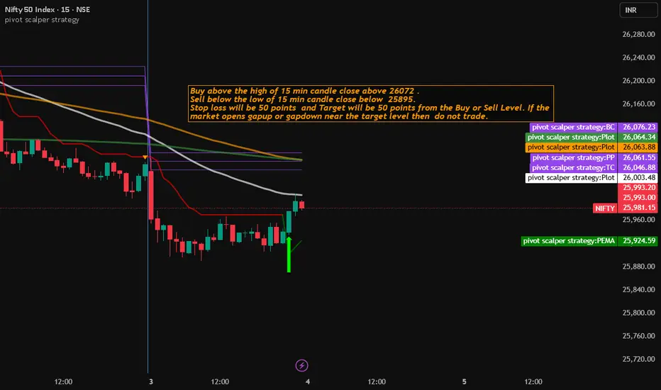 Enter Buy when the 15-minute candle closes above ₹26,072.