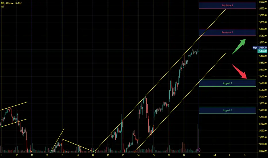 Index has resistance near 25750 – 25800 range and if index crosses and sustains above this level then may reach near 25950 – 26000 range.