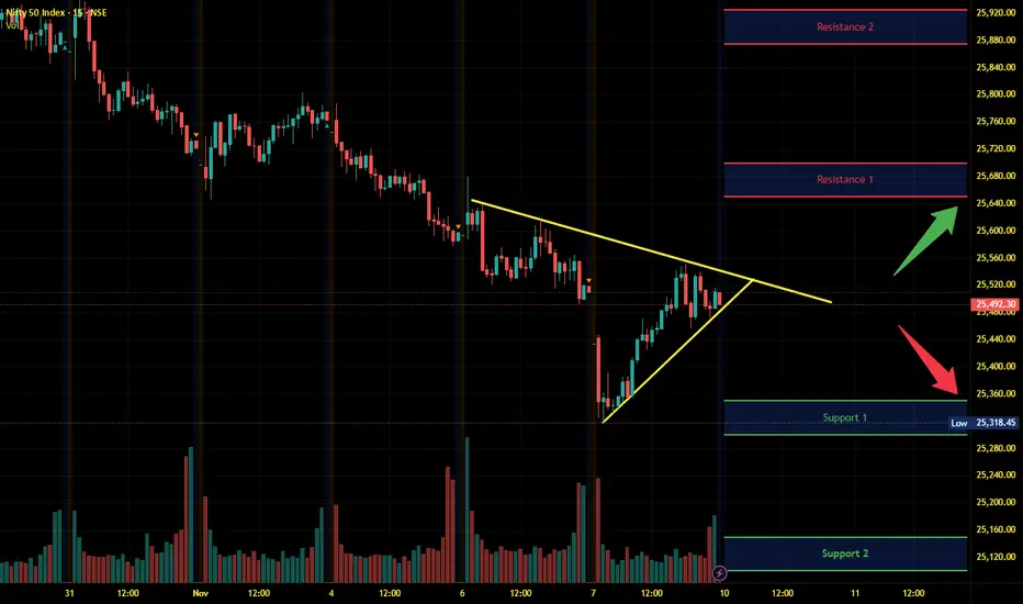 Nifty has immediate support near 25350 – 25300 range and if this support is broken then index may tank near 25150 – 25100 range.