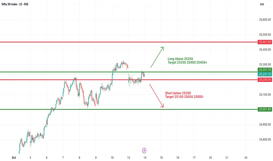 If Nifty sustains above 25,250, a fresh upside move may emerge toward 25,350, 25,400, and 25,450+. A breakout beyond 25,450 will confirm further bullish momentum.