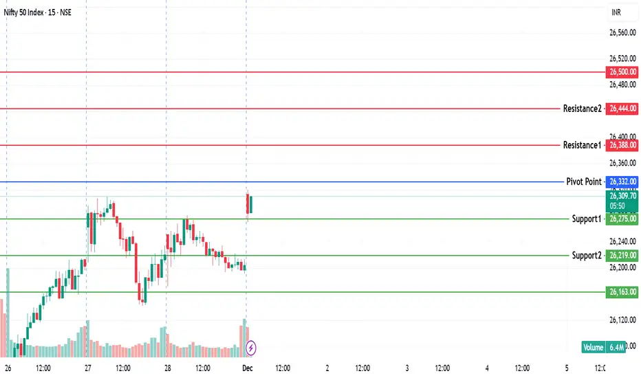 If the candle stays above the pivot point, it is considered a bullish bias; if it remains below, it indicates a bearish bias. Price may reverse near Resistance 1 or Support 1. If it moves further, the next potential reversal zone is near Resistance 2 or Support 2. If these levels are also broken, we can expect the trend.