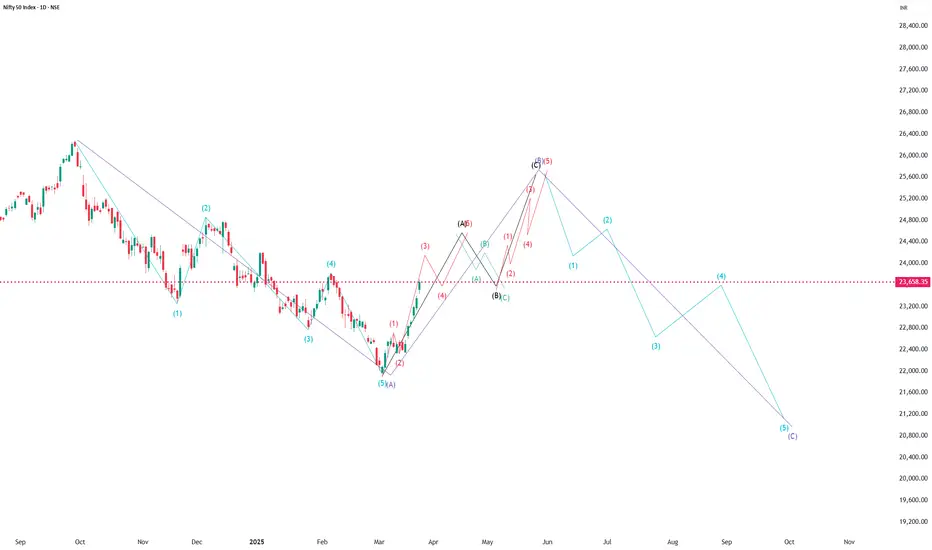 Since its against the trend ( which started from covid time) market has to unfold in ABC pattern which is nothing but correction. This is over, we saw a "Contracting leading diagonal" . Leading diagonals always form in wave A of ABC