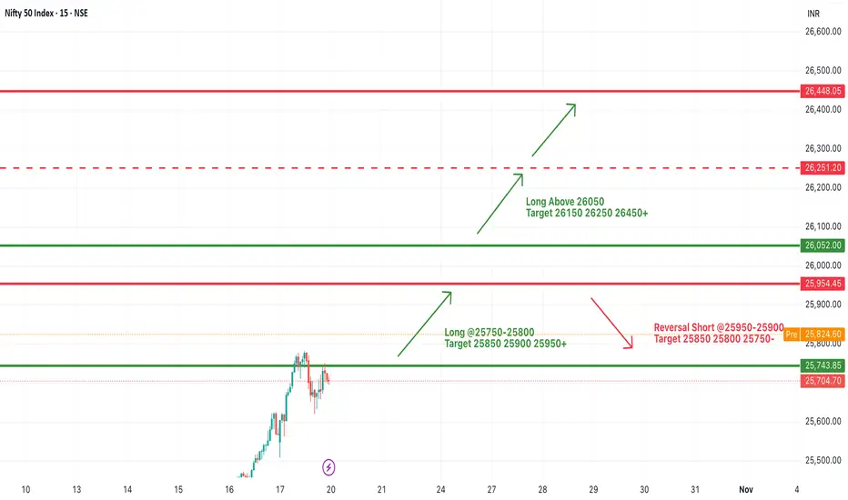 If Nifty sustains above 25,950–26,000, it may rally further toward 26,050, 26,150, and 26,250+ levels. A breakout above 26,450 will confirm continued strength, opening the path toward 26,600+ levels.