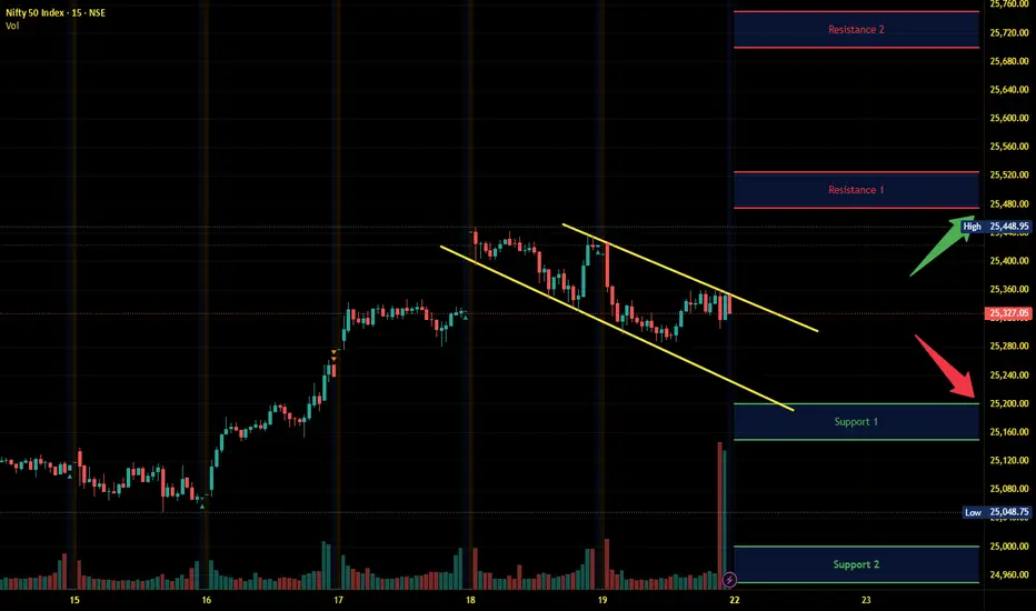 Index has resistance near 25475 – 25525 range and if index crosses and sustains above this level then may reach near 25700 – 25750 range.