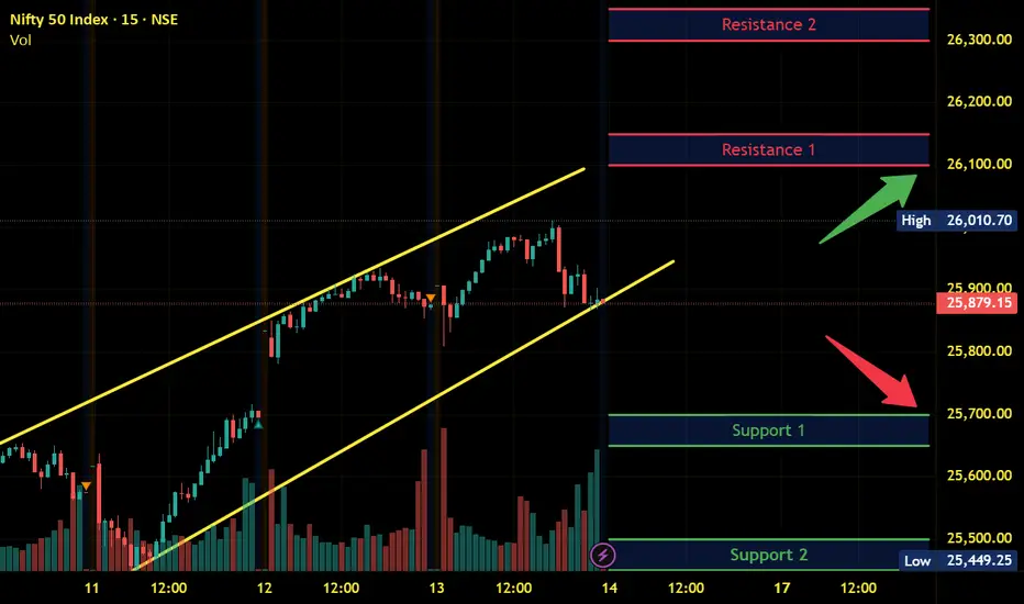 Nifty has immediate support near 25700 – 25650 range and if this support is broken then index may tank near 25500 – 25550 range.
