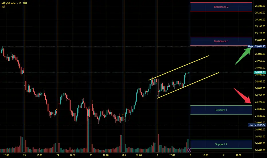 Index has resistance near 25050 – 25100 range and if index crosses and sustains above this level then may reach near 25250 – 25300 range.