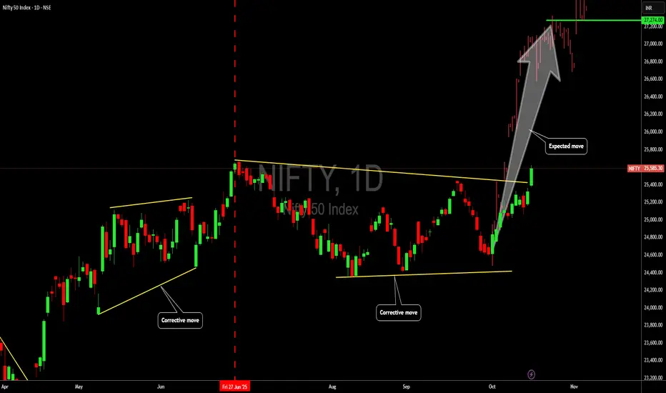 Since June 27th, 2025, the Nifty 50 index has been undergoing a correction phase, reflecting a temporary pause in the market's strong upward trend. Recent market data, however, indicates that this corrective phase is likely behind us, paving the way for renewed bullish momentum. This development offers a timely opportunity for investors to consider entering the market.